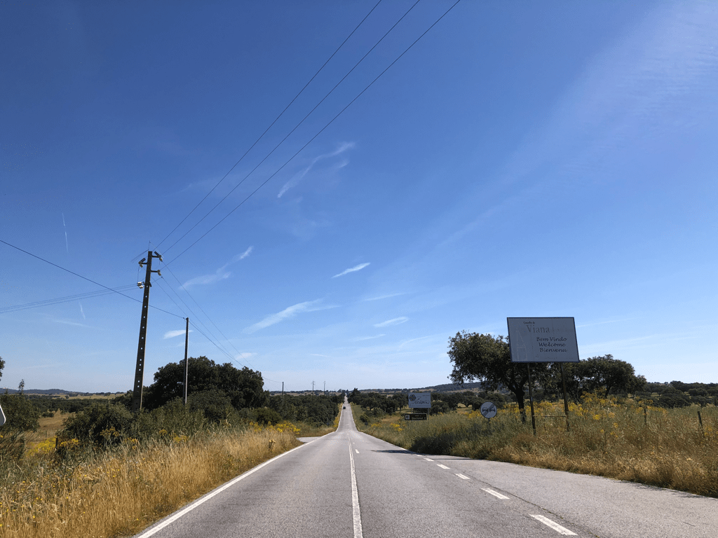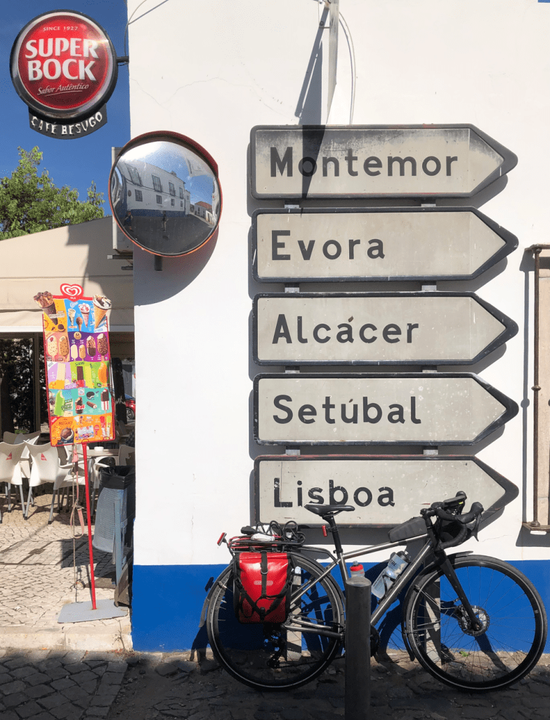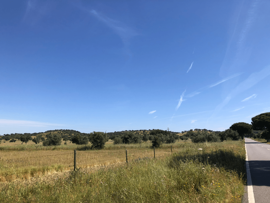 Having left early to beat the heat, we broke our own record, arriving at our destination before sanduiche o’clock. Today’s filling was queijo with a delicious scraping of quince jelly, procured from the breakfast buffet at our guest house. The setting was a cut above our usual standard (you really wouldn’t know that there’s a petrol station just next door).