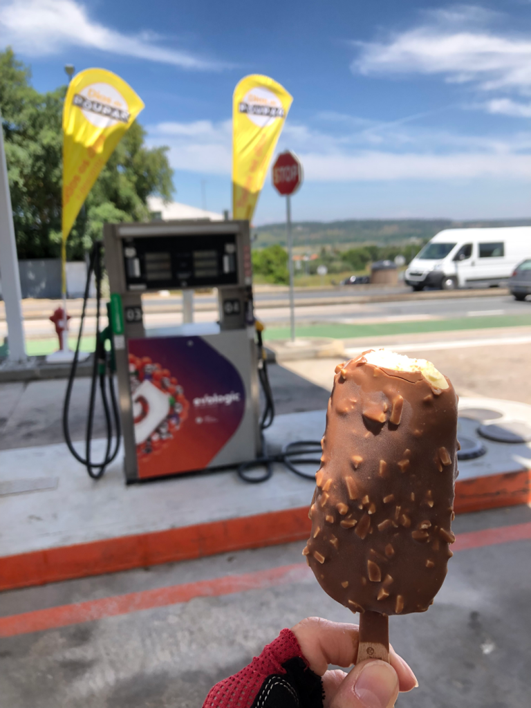 An hour or so later, we proved once again that petrol stations are just as good at providing fuel for cyclists as cars