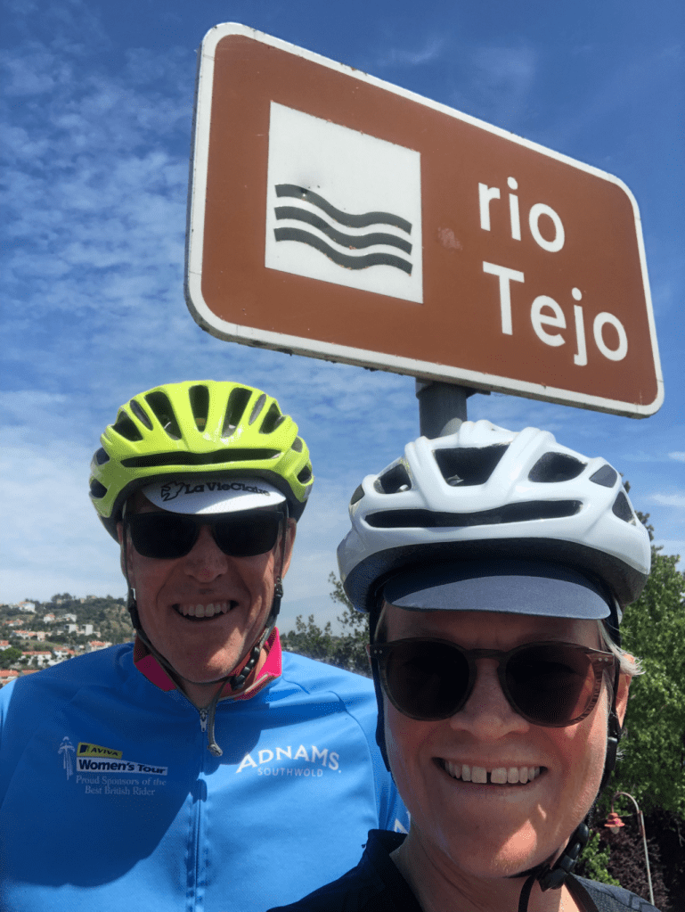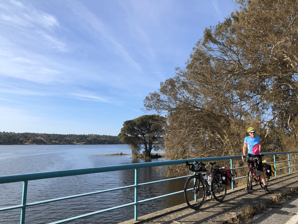 Team Bernard reached an exciting milestone today. When we last crossed this river two weeks ago, just north of Cáceres, it was the Tajo. But a lot of water has flowed under the bridge since then.