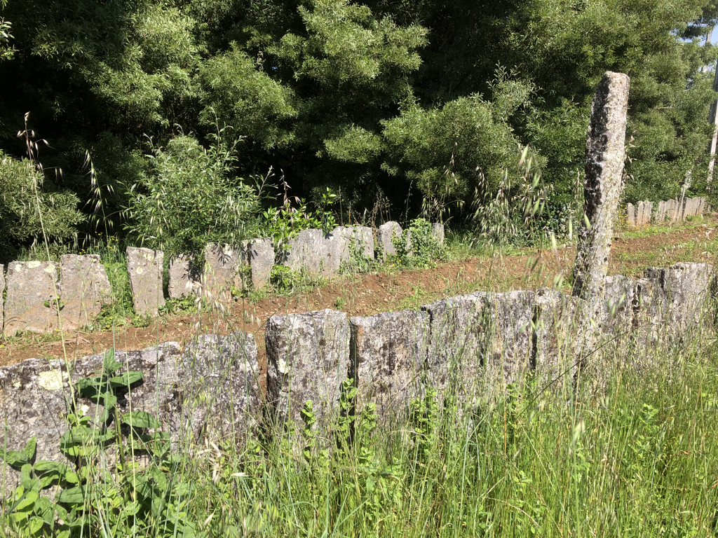 And, older still, these Roman paving slabs, variously re-purposed all along our route today as gateposts, supports for vines and, as below, fencing