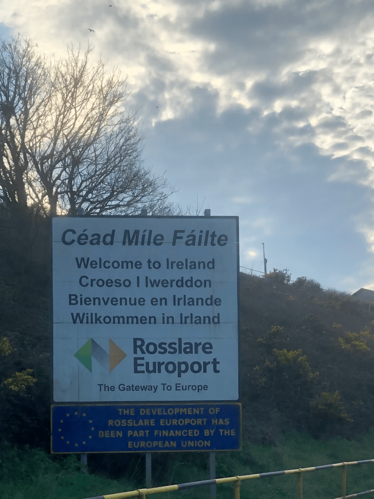 We appreciated the welcome as much as Midge enjoyed the smooth tarmac on our way past Wexford and Waterford. And, on a day dominated by news from the US, we noted that two road bridges were named after famous Irish Americans: Rose Fitzgerald Kennedy and her son, JFK. I wonder what he would have said about it all: “Ich bin ein Pinguin”?
