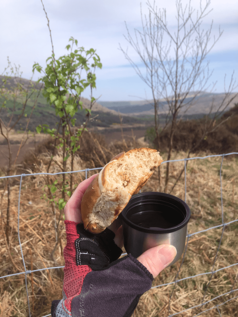 In a moment of uncharacteristic masochism, Jon decided to ignore these obvious challenges and join me ‘as far as the top of the second hill’. The first one turned out to be the toughest. If you squint, you’ll see Midge way down in the valley, in the centre of the shot.