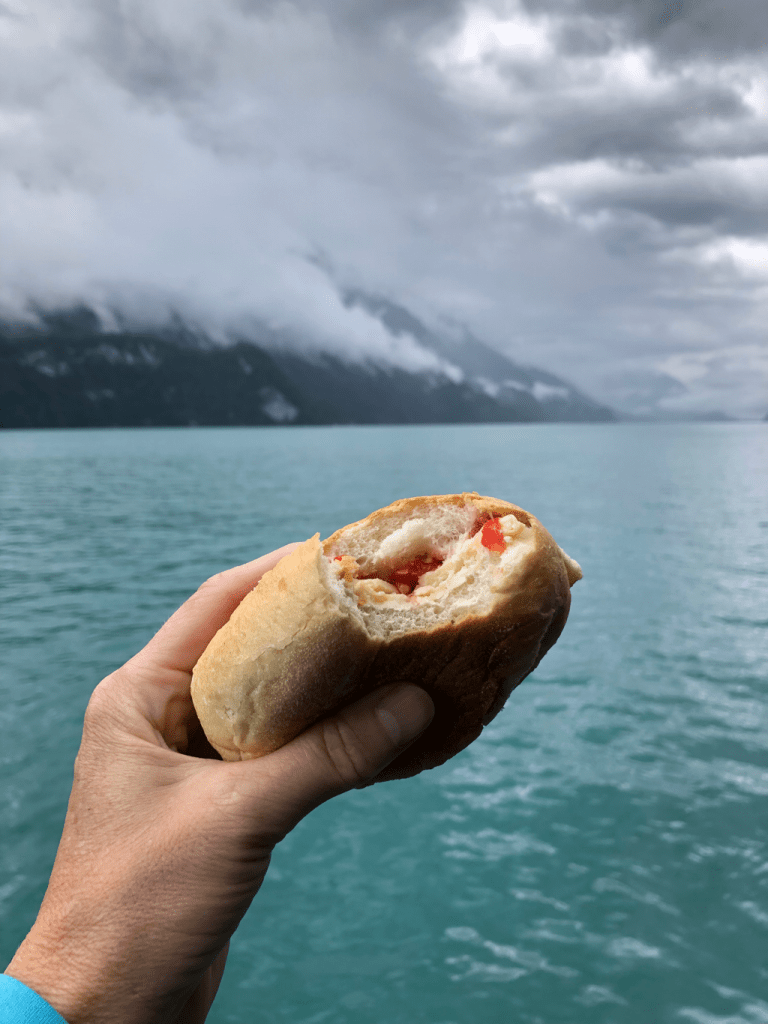 At this point, the usually excellent Swiss cycle path engineers rather let us down. To be fair to them, the topography/geology of the lakeside isn’t conducive to squeezing in a sensible bike path, and the main road was basically a motorway, complete with long scary tunnels, so that wasn’t an option. Fortunately, Guillaume had Une Idée, and for once it was a good one. Bernard, who loves a boat ride, needed no second invitation: