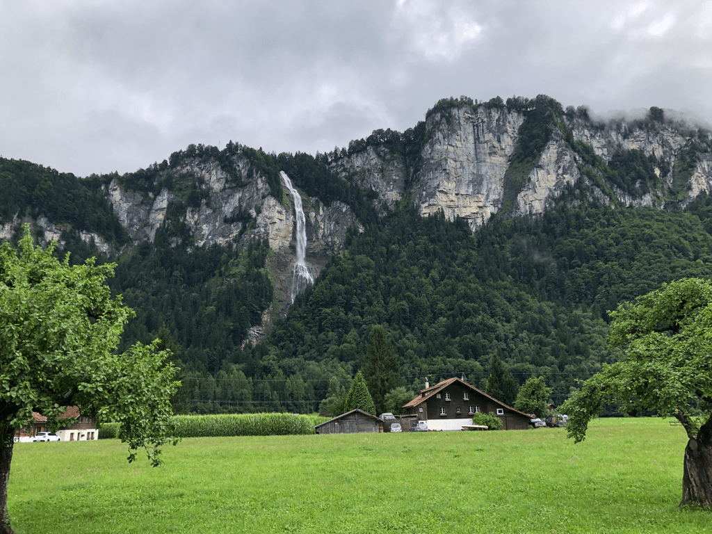 Finally, if yesterday’s theme was 007, today it was the turn of Sherlock Holmes. By which I mean that we passed close to the Reichenbach Falls. Though not close enough to visit, so here’s a photo of another waterfall instead: