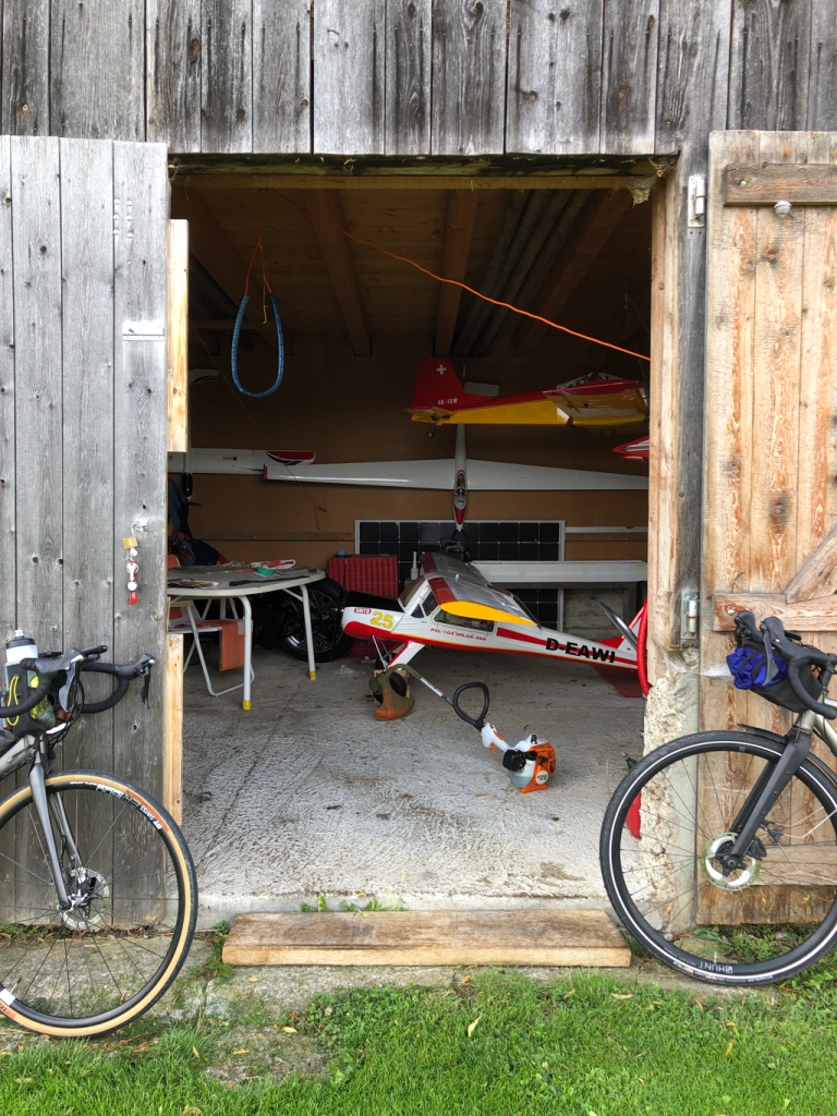 Another highlight was our lunch spot: a sunny bench outside a barn containing model aircraft, with permission from the maintenance man who was busy mowing the landing strip