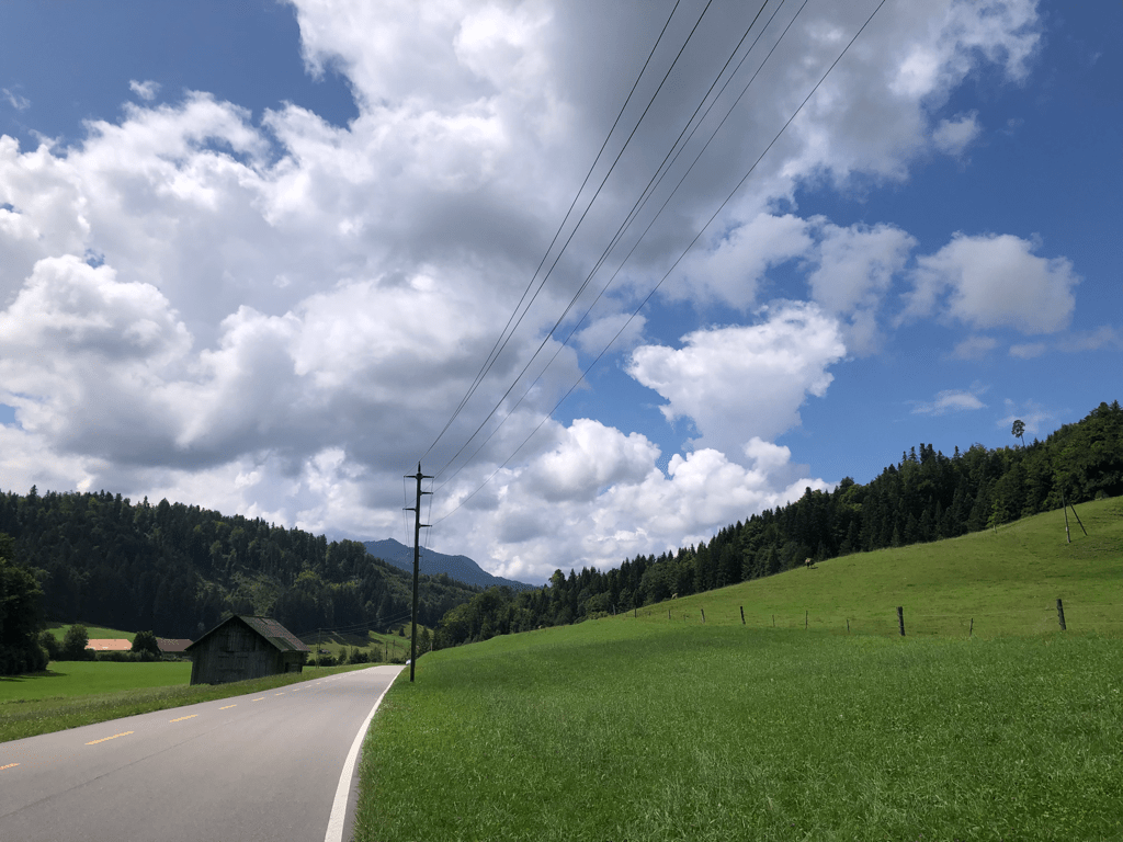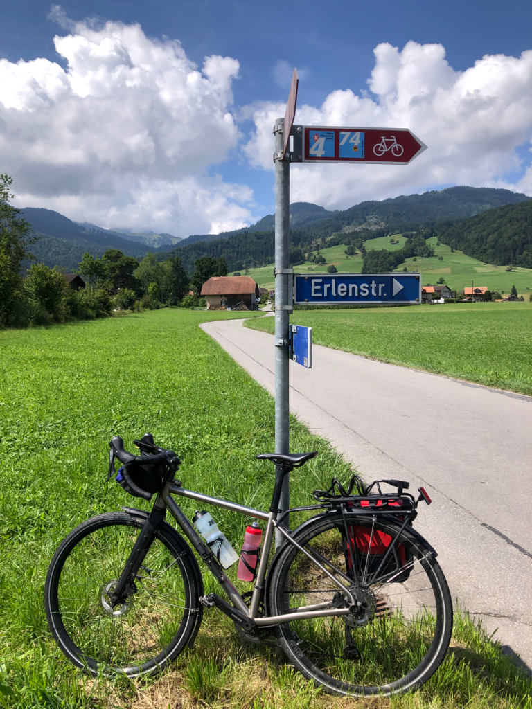 Leaving Spiez and the lake behind us, we turned west and joined Swiss cycle route 4, aka the Alpen Panorama route: